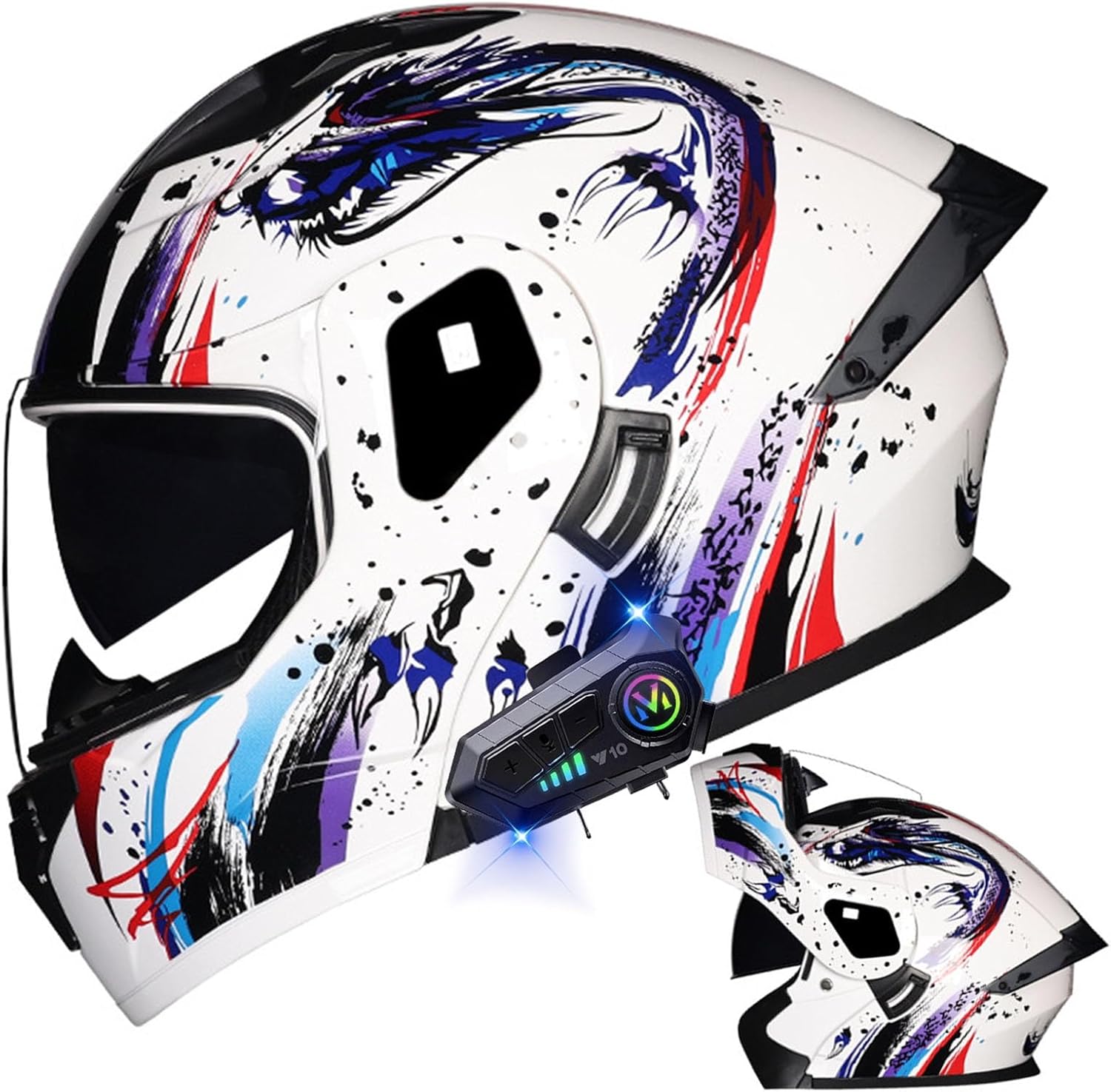 Шлем мотоциклетный AAREG Bluetooth с принтом, белый