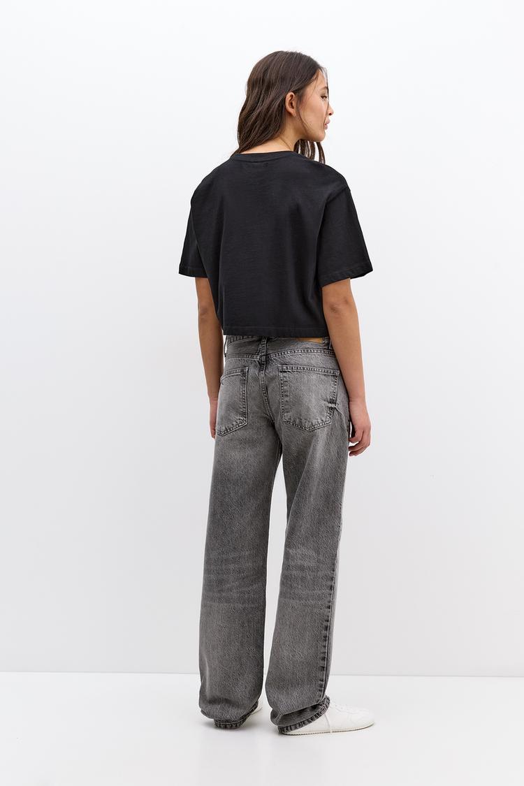 Укороченная футболка с коротким рукавом Pull And Bear, черный 1 980₽