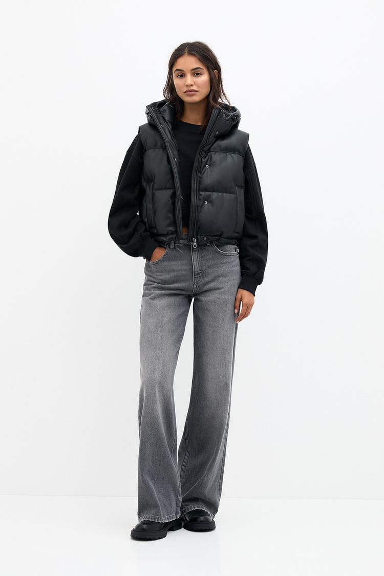 Стеганый жилет с эффектом кожи Pull And Bear, черный 4 849₽