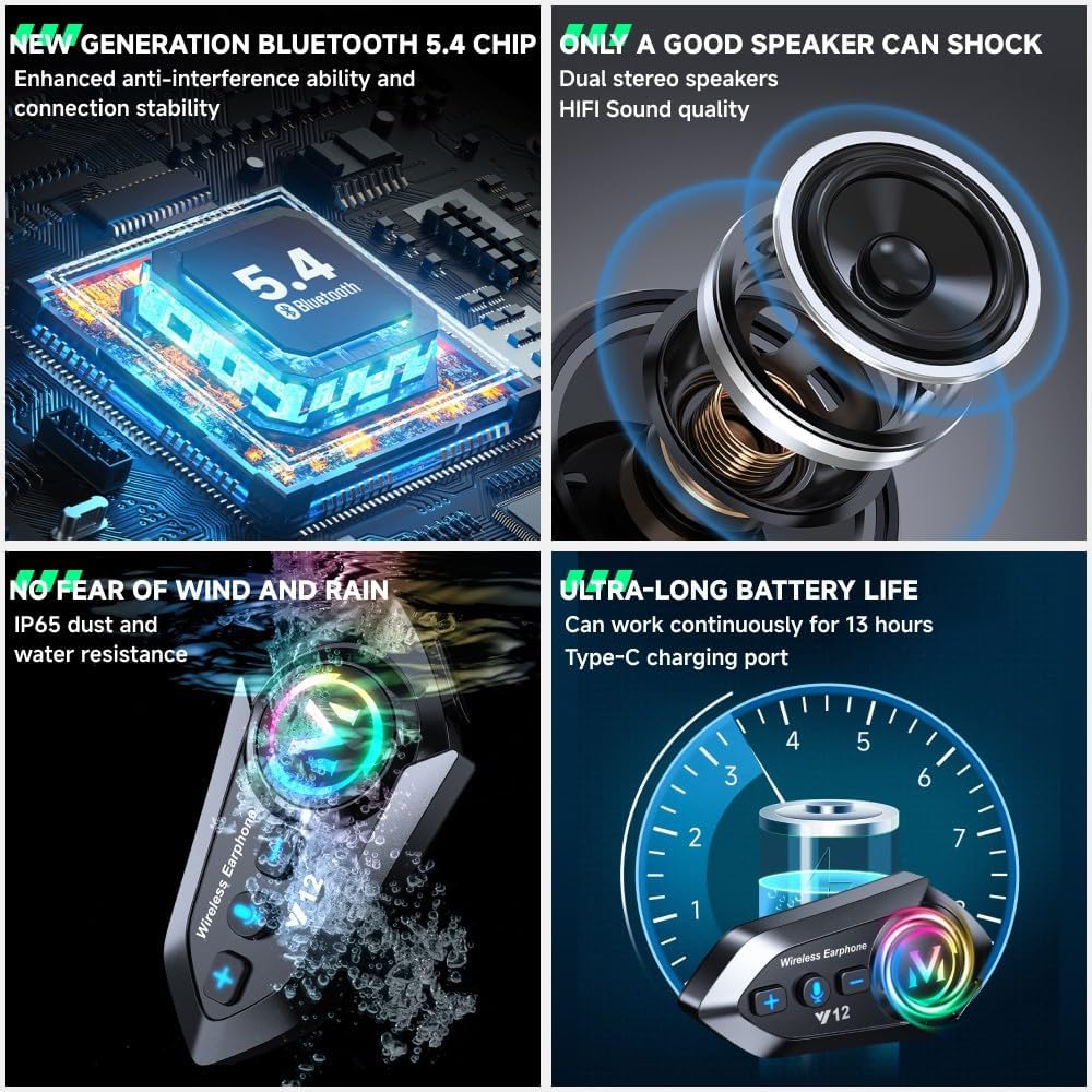 Этот мотоциклетный шлем оснащен чипом Bluetooth 5.3, обеспечивающим кристально чистый Звук и длительное время автономной работы. С аккумулятором емкостью 1000 мАч он обеспечивает до 3 часов воспроизведения и 18 месяцев в режиме ожидания. Умная функция 1-to-2 одновременно подключаться к двум устройствам, обеспечивая плавное переключение между музыкой, навигацией и звонками. Глубокая водонепроницаемая конструкция обеспечивает надежность в любых погодных условиях.