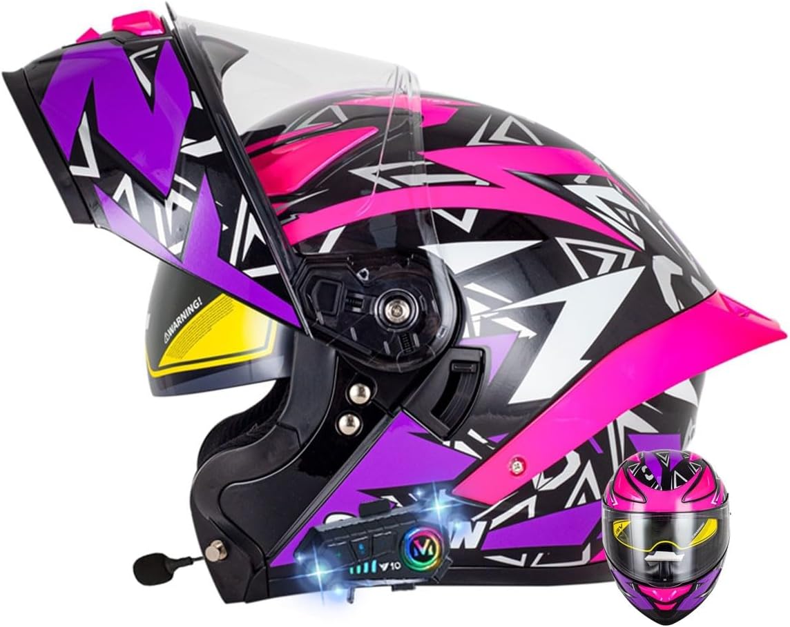 Шлем мотоциклетный Dirertys Bluetooth, фиолетовый / розовый