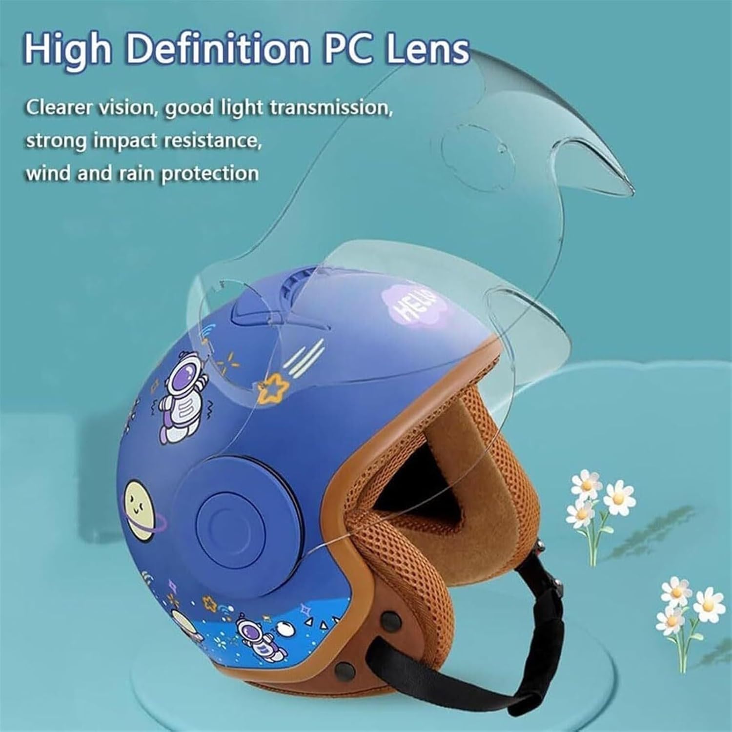 Дизайн: детский мотоциклетный шлем имеет множество милых мультяшных узоров на поверхности, что повышает удовольствие от детской езды. Его модный и ретро-дизайн нравится детям.