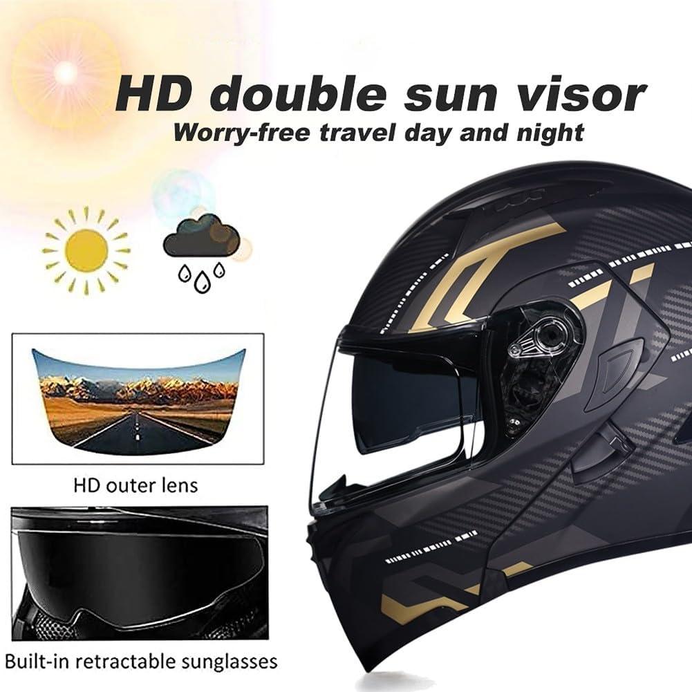 Двойной козырек: мотоциклетные шлемы оснащены двойным козырьком, что более удобно и практично. Встроенное зеркало для чая может эффективно защитить глаза и избежать помех от яркого света на линии обзора и повреждения зрения во время езды. Лицевую часть шлема можно поднять, чтобы обеспечить более широкое поле зрения и в полной мере насладиться теплым воздухом.