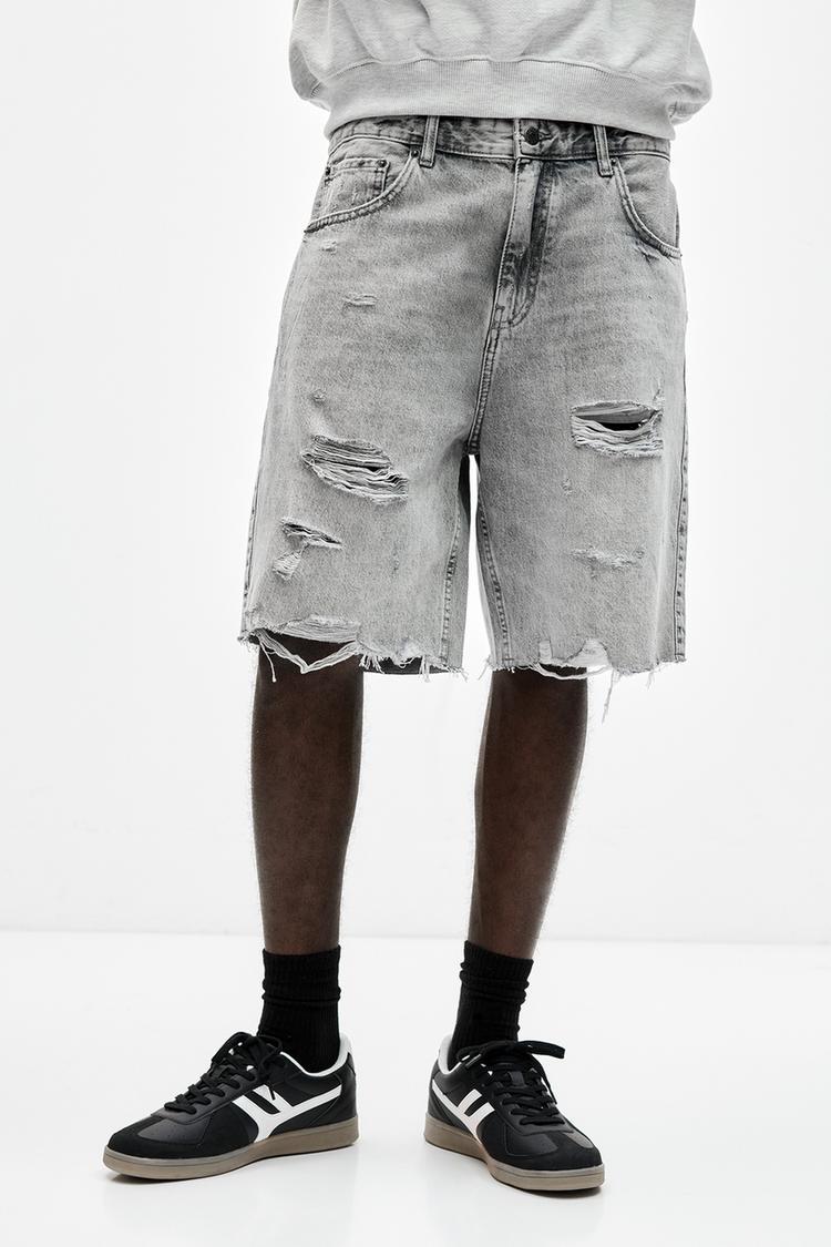 Шорты-Бермуды из рваного денима Pull And Bear, серый