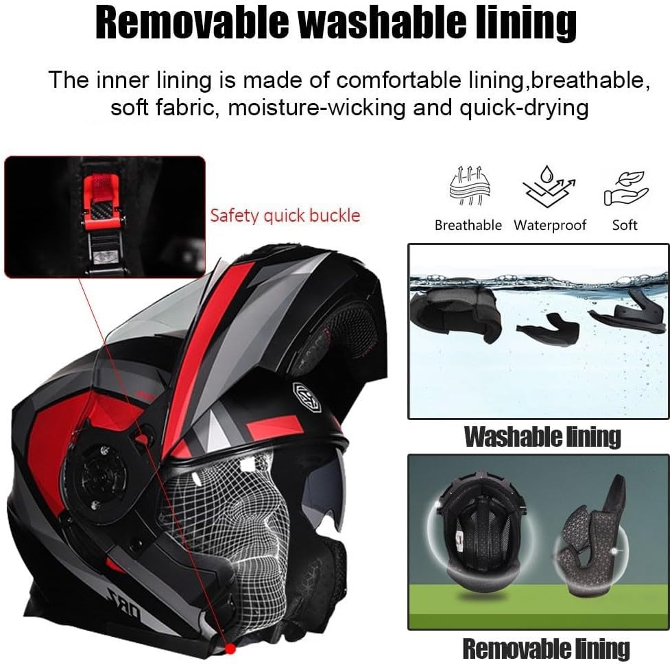 Конструкция: Модульная откидная защита подбородка и система двойного козырька обеспечивают максимальную универсальность, позволяя вам переключаться между режимами полного и открытого лица. Шлем оснащен быстросъемным подбородочным ремешком, съемной и моющейся подкладкой и 3D-печатной внутренней подкладкой для максимального комфорта. Противотуманная, антипотовая конструкция обеспечивает четкий обзор во время длительных поездок.