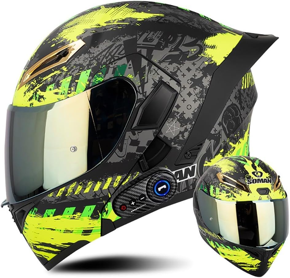 Шлем мотоциклетный TONCXRW Bluetooth, черный / салатовый