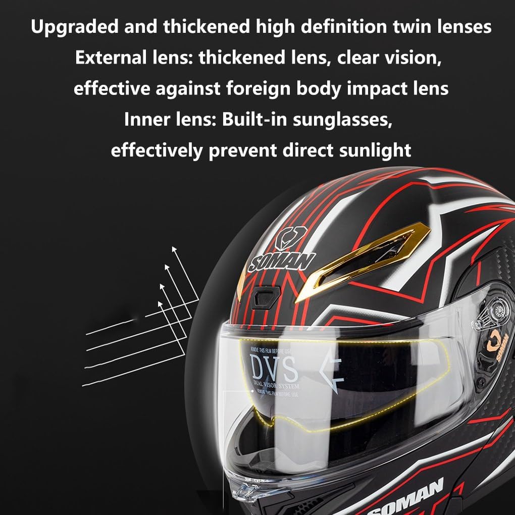 Мощная функция Bluetooth: мотоциклетный шлем Bluetooth версии 5.3 предлагает вам 24-36 часов разговора. Управление одним касанием позволяет легко отвечать на звонки или слушать музыку.