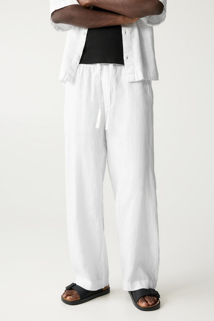 Мешковатые джоггеры из 100% льна с карманами и эластичным поясом на шнурке.