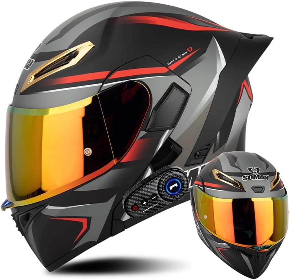 Шлем мотоциклетный TONCXRW Bluetooth, серый / черный / красный