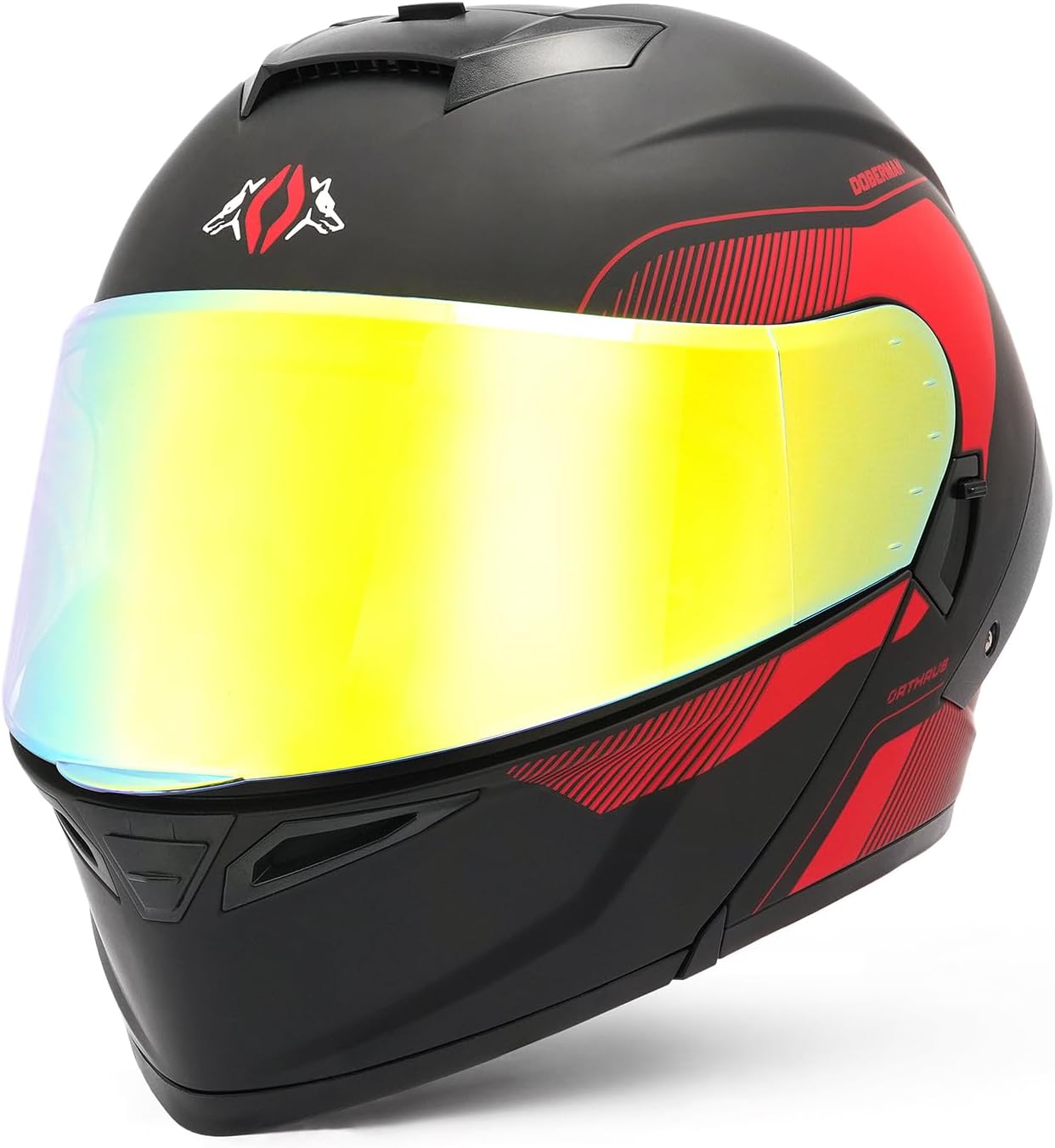 Мотоциклетные шлемы Orthrus производятся и проверяются в строгом соответствии с международными стандартами. Они имеют легкую оболочку ABS, буферный слой EPS, дышащую и удобную внутреннюю подкладку и одобрены DOT. Orthrus может переключаться между закрытым и открытым шлемом одним щелчком. Обтекаемый аэродинамический дизайн помогает снизить сопротивление ветра и шум. Несколько вентиляционных отверстий облегчают циркуляцию воздуха. Шлем оснащен светодиодным фонарем с 3 режимами мигания для обеспечения безопасности в ночное время. Он оснащен широкоугольным зеркальным солнцезащитным козырьком с оптическим покрытием RST, который эффективно изолирует ультрафиолетовые лучи и предотвращает раздражение глаз. Подкладка из гипоаллергенной ткани, приятная на ощупь. Эта подкладка съемная и легко чистится. полнолицевой модульный шлем Orthrus идеально подходит для мотоциклов, Harley, мотокроссовых мотоциклов, мотоциклов для бездорожья, квадроциклов, снегоходов, мопедов и скутеров. Подходит как для мужчин, так и для женщин.