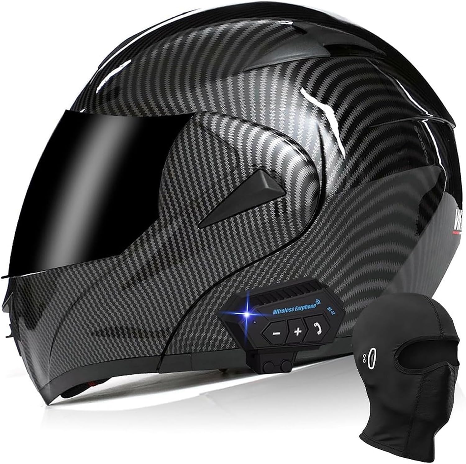 Сертифицированный шлем Bluetooth: Модульный шлем Bluetooth с откидной передней частью соответствует стандарту безопасности DOT FMVSS 218 и получил все сертификаты безопасности дорожного движения в Европе и США. Высокопрочная оболочка ABS и амортизирующий слой EPS могут эффективно защитить вас