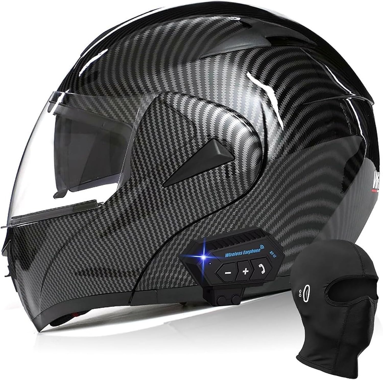 Сертифицированный шлем Bluetooth: Модульный шлем Bluetooth с откидной передней частью соответствует стандарту безопасности DOT FMVSS 218 и получил все сертификаты безопасности дорожного движения в Европе и США. Высокопрочная оболочка ABS и амортизирующий слой EPS могут эффективно защитить вас