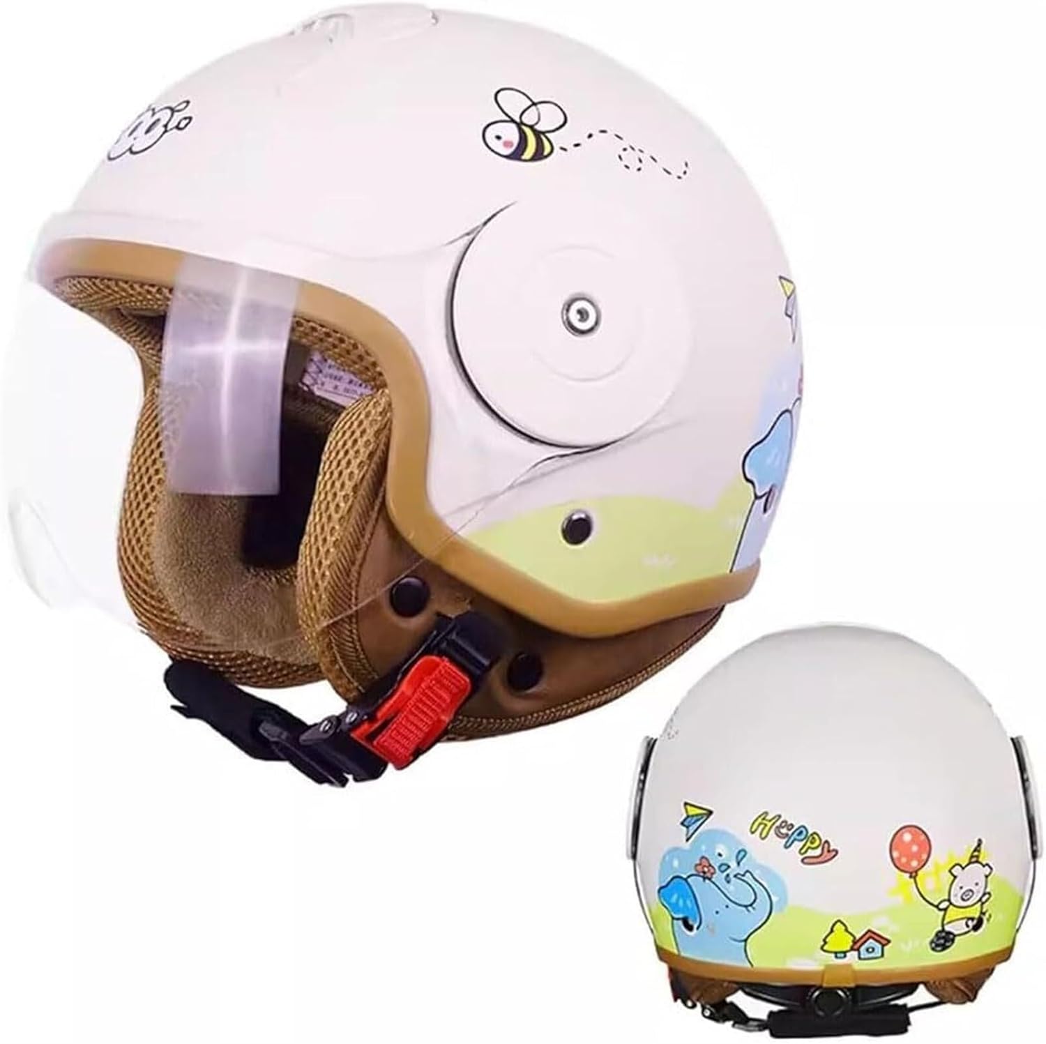 Дизайн: детский мотоциклетный шлем имеет множество милых мультяшных узоров на поверхности, что повышает удовольствие от детской езды. Его модный и ретро-дизайн нравится детям.