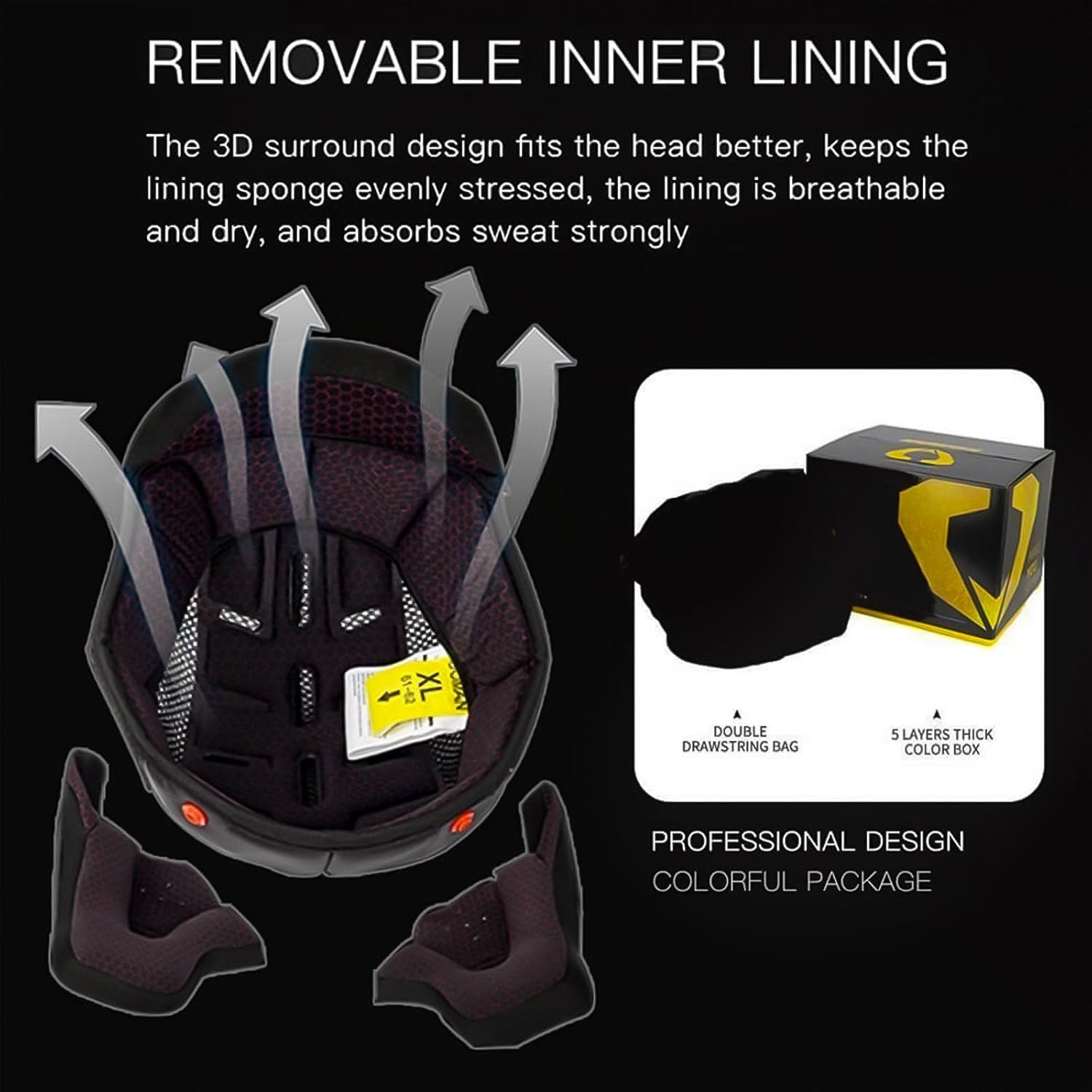 Ремешок для подбородка и внутренняя подкладка Полноразмерный мотоциклетный шлем имеет быстросъемный ремешок для подбородка, что особенно удобно для тех, кто хочет, чтобы в одном устройстве были как простая в использовании пряжка, так и подъемный подбородок для обеденных перерывов во время поездок. Материал внутренней подкладки удобный, мягкий и приятный для кожи, съемный и моющийся, легко надевать и снимать.