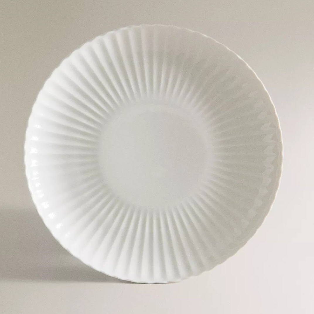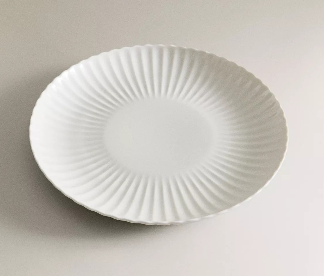 Фарфоровая обеденная тарелка с волнистым узором дополнит и украсит любую сервировку стола.
