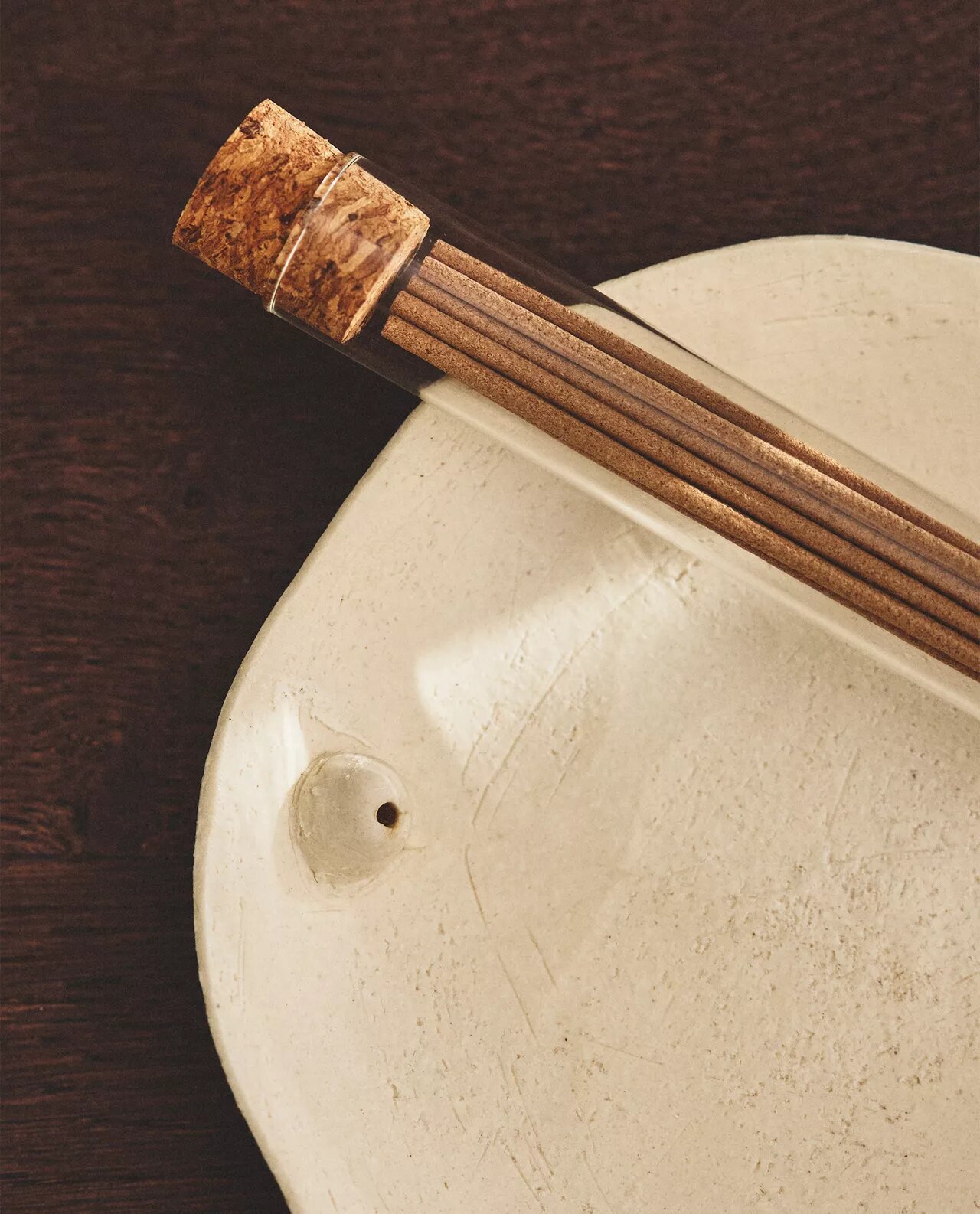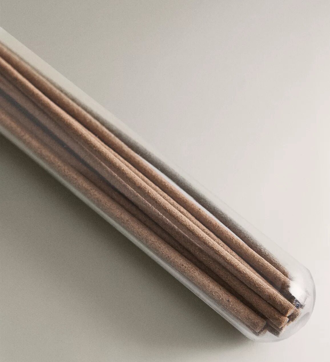 Ароматические благовония, которые постепенно распространяют свой запах по всей комнате. Набор состоит из 20 штук. Обволакивающий и изысканный аромат, сочетающий мистическую глубину ладана и акигалавуда с цитрусовой свежестью бергамота. В сердце аромата ветивер и мягкие древесные ноты сливаются с неземными цветочными нотами и кашемиром, создавая лёгкое тепло. База раскрывается стойким шлейфом пачули, ванили, кумарина и амбровых смол, оставляя после себя атмосферу безмятежной элегантности и комфорта.