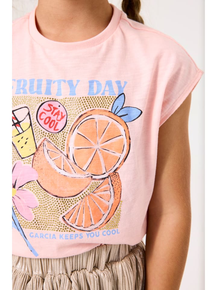 Футболка «Fruity Day» от Garcia для девочек отличается веселым дизайном с ярким фруктовым принтом, что делает ее идеальной для повседневного использования. Изготовленный из 100% хлопка, он обеспечивает комфорт и нежен к детской коже. Модель доступна в размерах от 92 до 134 и идеально подходит для детей от двух до девяти лет. Эту универсальную футболку легко сочетать с разными нарядами, и она станет стильным must-have для маленьких поклонниц моды.