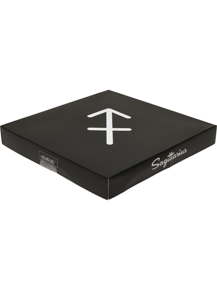 Комплект из двух носков с зодиакальным мотивом поставляется в высококачественной подарочной коробке: на одной паре на ребристом голенище изображен символ зодиака, на другой — название знака зодиака в виде вертикальной надписи. Носок и пятка черно-белых носков имеют контрастный цвет. Чулки длиной до икр имеют узкую манжету и изготовлены из хлопка, полиэстера и эластана для максимального комфорта. Они доступны в четырех размерах и со всеми мотивами зодиака.