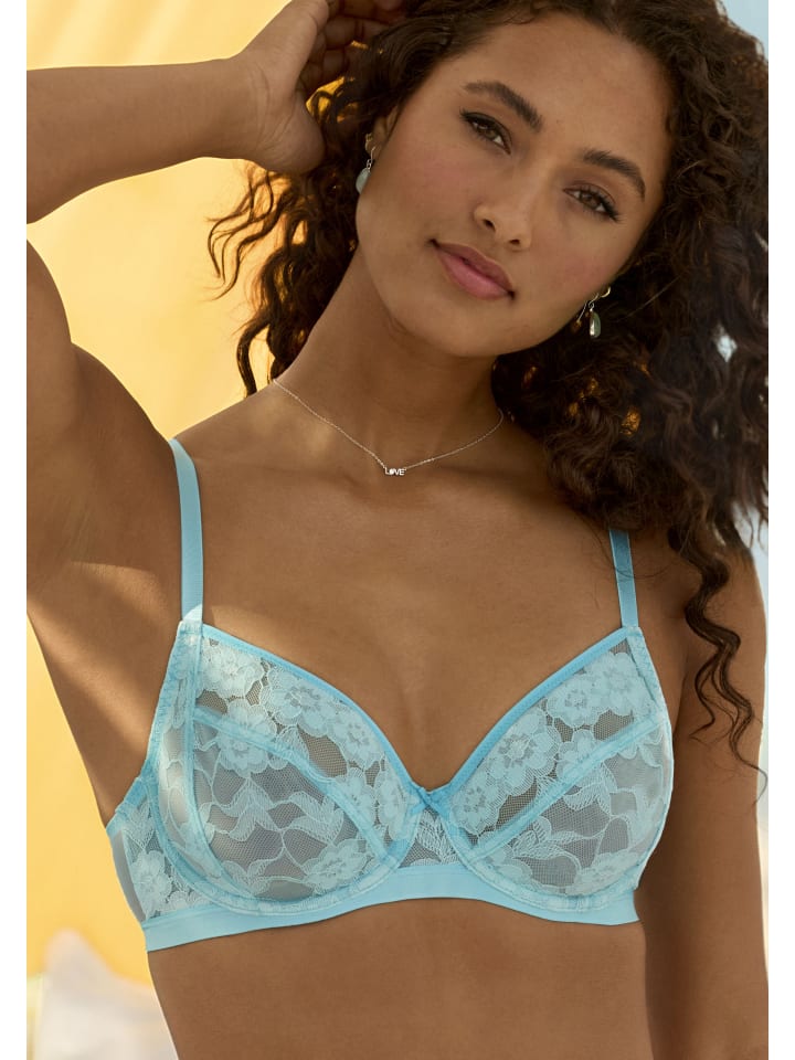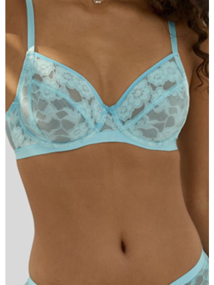 - Женственный бюстгальтер на косточках из нежного эластичного жаккардового кружева и тонкой сетки