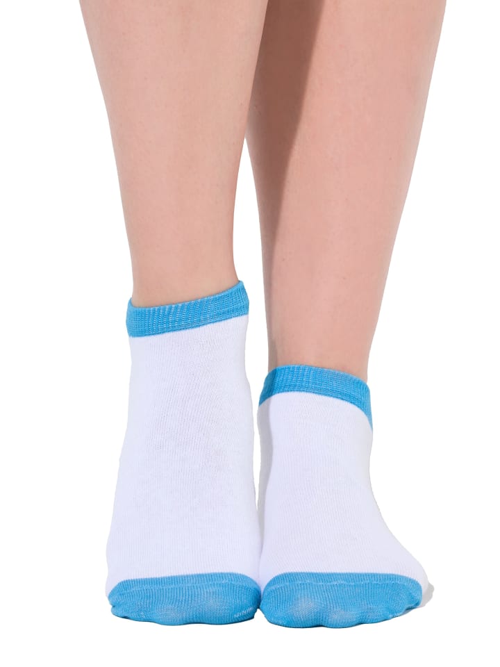 Носки-кроссовки в упаковке по 7 штук. Спортивный белый цвет с неоновой отделкой. Очень короткие носки — почти незаметные в кроссовках и в то же время привлекающие внимание благодаря цветным манжетам. Удобный пояс, ничего не сдавливает.