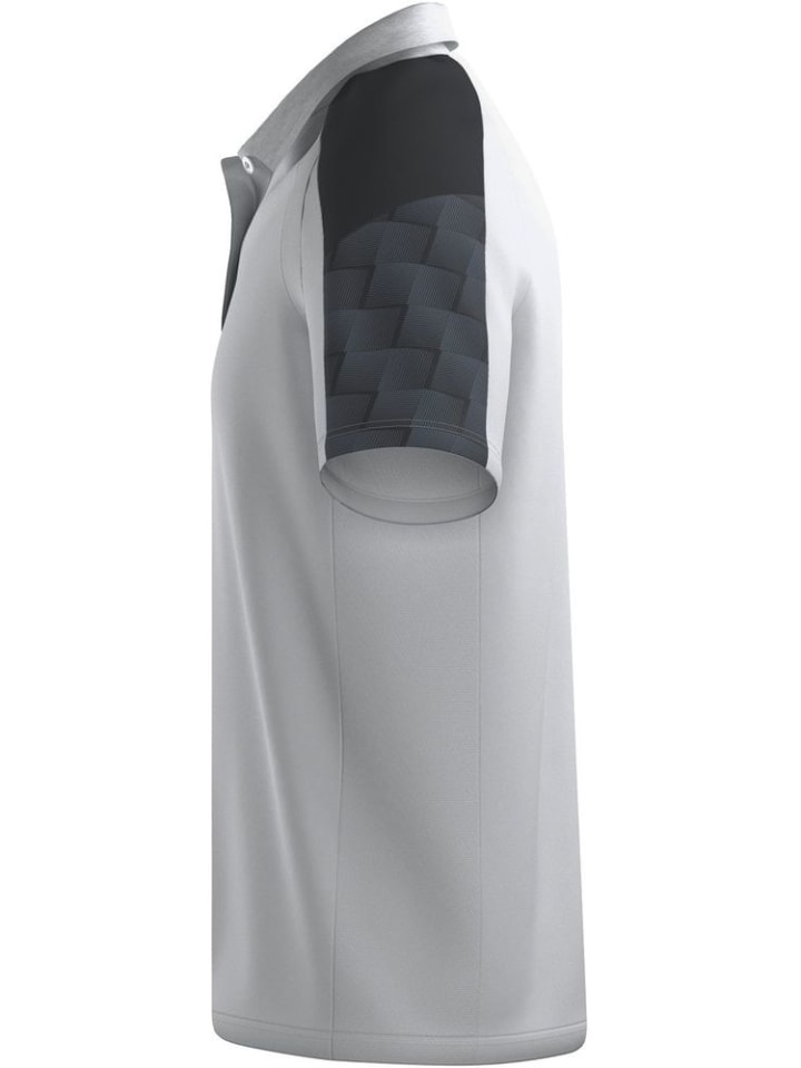 Легкий функциональный материал; Покрой реглан и эластичные вставки для полной свободы движений; Воротник-поло с планкой на 2 пуговицы; Жаккардовый воротник для лучшей регуляции температуры тела; Стильный дизайн на рукавах с 3D эффектом; Контрастная окантовка на рукавах