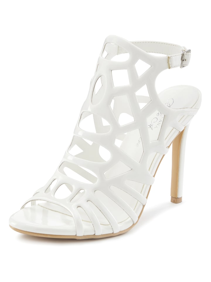 Соблазнительные босоножки на высоком каблуке от Lascana. Изюминка: вырезы в виде сетки. Каблук высотой 10 см визуально удлиняет ноги. Идеально сочетается с платьем или брюками. С верхом из блестящей лакированной кожи.