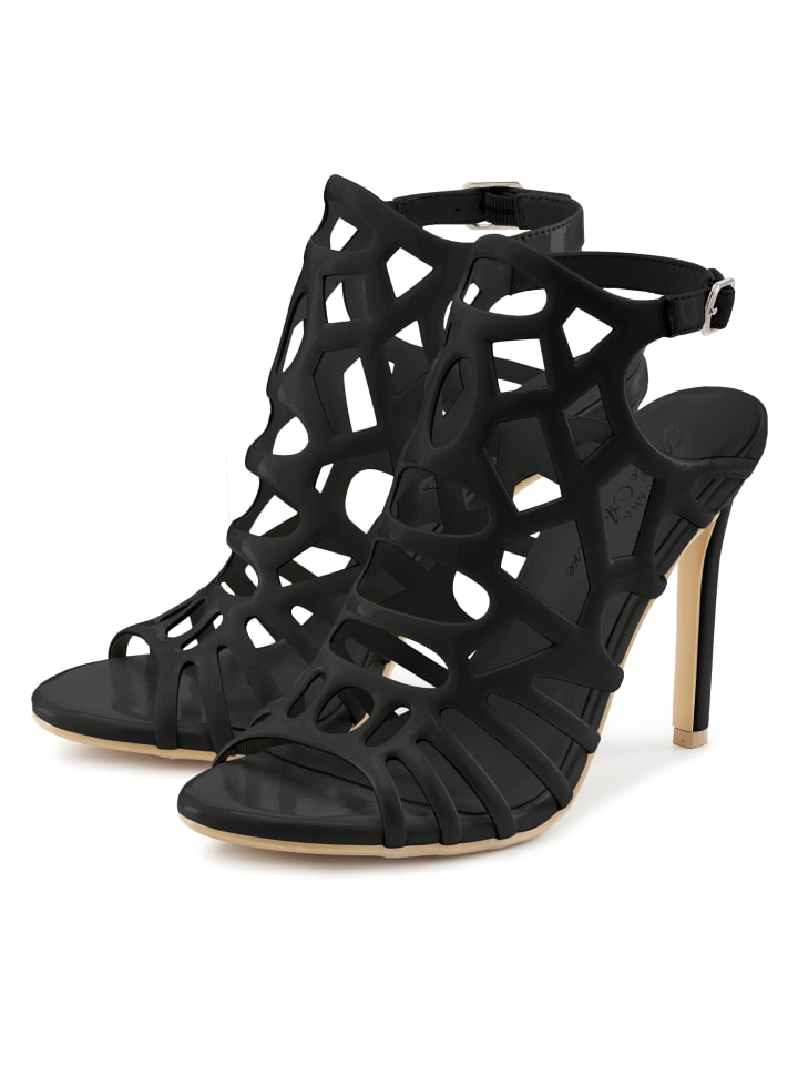 Соблазнительные босоножки на высоком каблуке от Lascana. Изюминка: вырезы в виде сетки. Каблук высотой 10 см визуально удлиняет ноги. Идеально сочетается с платьем или брюками. С верхом из блестящей лакированной кожи.