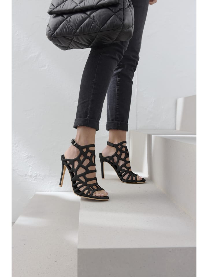 - Соблазнительные босоножки на высоком каблуке с сетчатыми вырезами