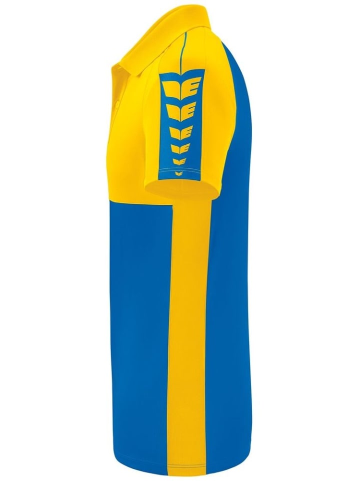 Легкий, быстросохнущий функциональный материал; Ребристый воротник-поло с планкой на пуговицах; Дизайн крыла ERIMA на плече