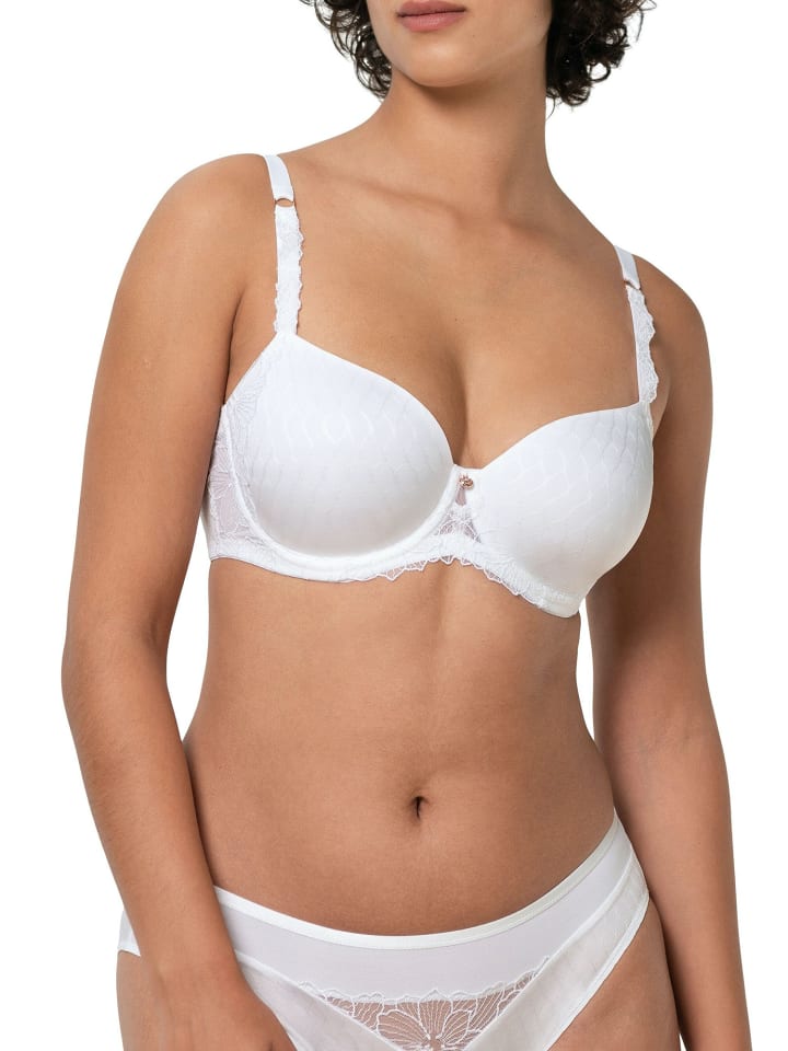Этот бюстгальтер из роскошной серии Azalea Florale от Triumph приятно мягкий и легкий благодаря качественной чашке-спейсеру. Элегантная классика с изящными деталями из высококачественного кружева. - Вышитый вырез, боковины чашечек, люлька и крылья