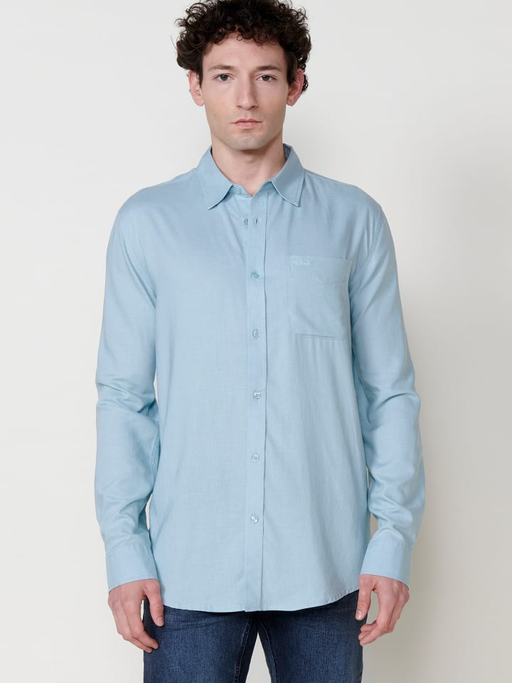 Рубашка с длинными рукавами. Застежка на пуговицы спереди. Передний карман. Состав 55% лен 45% вискоза.