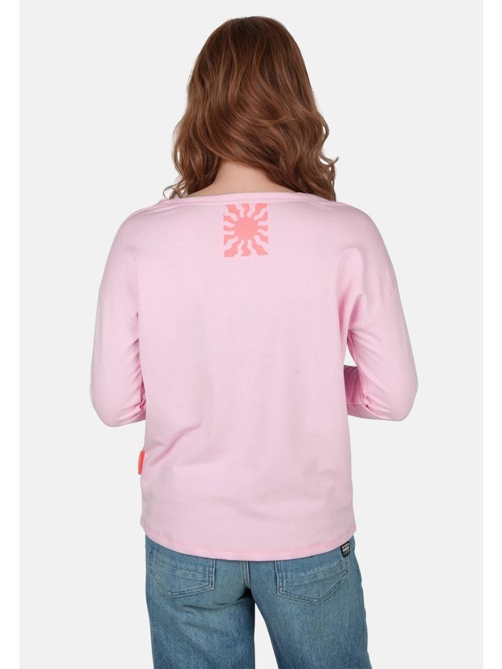 Длинный рукав UNNERWEGS из зальцхаута – ваш идеальный спутник для спокойных дней и захватывающих приключений! Эта рубашка с длинными рукавами благодаря свободному крою и спущенным плечам не только обеспечивает повседневный вид, но и максимальный комфорт. Круглый вырез и манжеты обеспечивают удобную посадку, которая будет чувствоваться в течение всего дня. Рубашка с длинными рукавами доступна в двух красивых цветах: розовом и льдисто-голубом. Особую изюминку представляет собой прямоугольный принт на спине под горловиной с абстрактным изображением солнца яркого неоново-розового цвета. Этот яркий принт придает топу с длинными рукавами уникальный характер и делает его по-настоящему притягивающим взгляды.