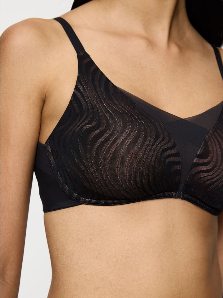 Мягкий бюстгальтер Triumph Shape Smart Ellipse декорирован волнообразной жаккардовой сеткой, что придает ему легкий и женственный вид. Его инновационная функциональность обеспечивает идеальную поддержку и стильно разглаживает спину и предплечья. Изготовлено из переработанного полиамида.