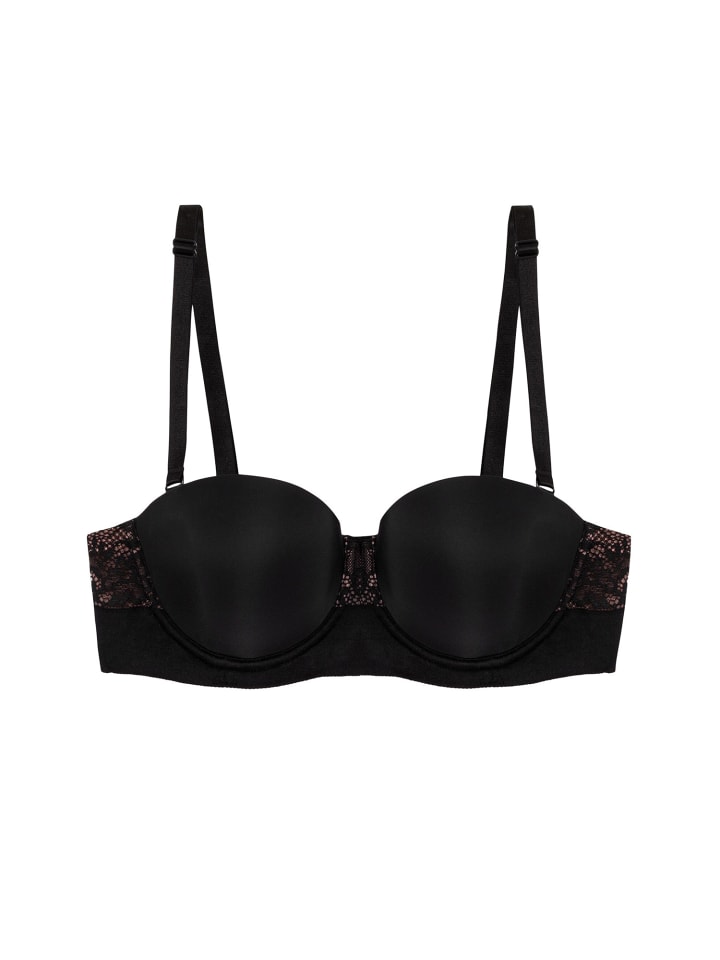 Формованные чашки и красиво оформленное цветочное кружево создают элегантный бюстгальтер Vivid Spotlight. Этот невероятно подчеркивающий фигуру фасон обеспечивает оптимальную посадку и поддержку для большой груди с размером чашки до F. Силиконовая вставка на оправе обеспечивает дополнительную поддержку при ношении без бретелек. - Съемные ремни