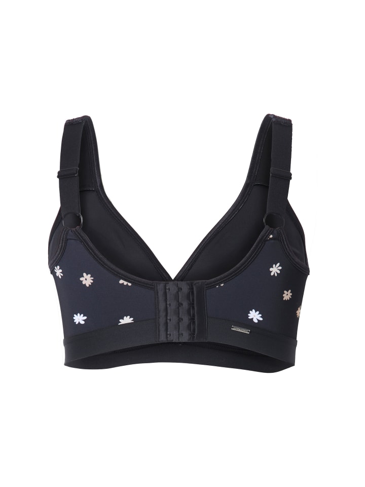 Бюстгальтер-минимайзер без косточек. Визуально уменьшает размер груди. С цветочным узором, формованными чашами и мерцающей атласной окантовкой. Удобные, широкие, регулируемые лямки.