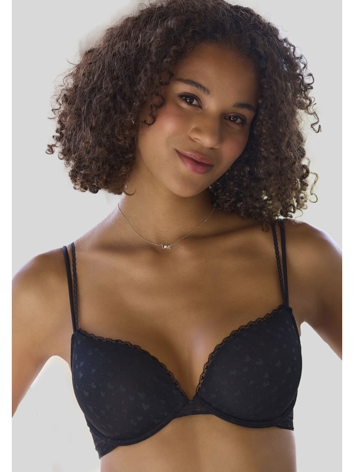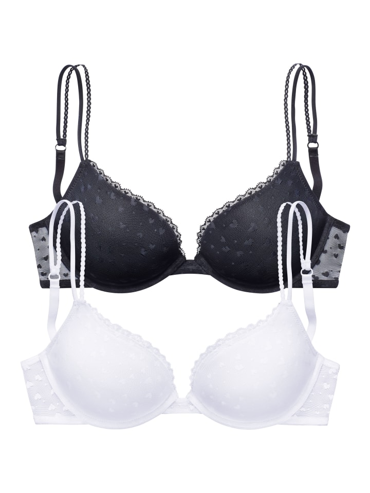 Романтичный бюстгальтер пуш-ап на косточках со съемными подушечками — для эффектного декольте. Изготовлено полностью из симпатичной сетки в форме сердца. С декоративными бретельками и элегантной кружевной отделкой по краю чашки. Индивидуально регулируемые бретели и застежка на спине. В привлекательной двойной упаковке. Изготовлено из 80% полиамида, 20% эластана.