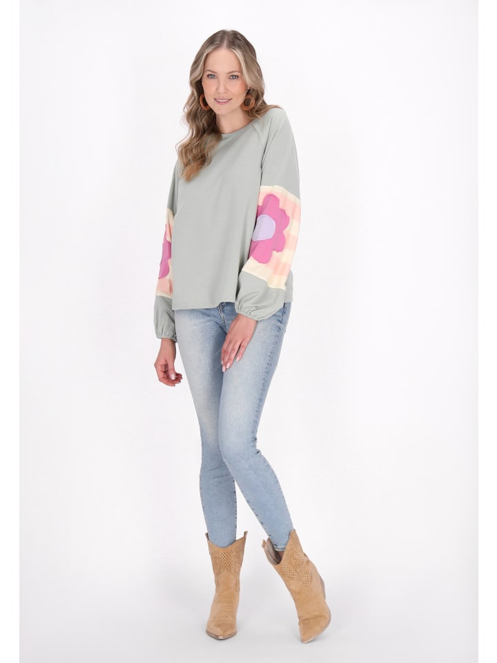 Откройте для себя эту модную толстовку, разработанную с непринужденным кроем и шикарным вырезом лодочкой. Длинные рукава-фонарики имеют реглан, дополненный эластичными манжетами и яркими цветочными нашивками для дополнительного стиля. Изготовленная из трикотажных цветных блоков, эта толстовка идеально подходит для повседневной или повседневной моды, объединяя комфорт со стилем из коллекции Fashion Look.
