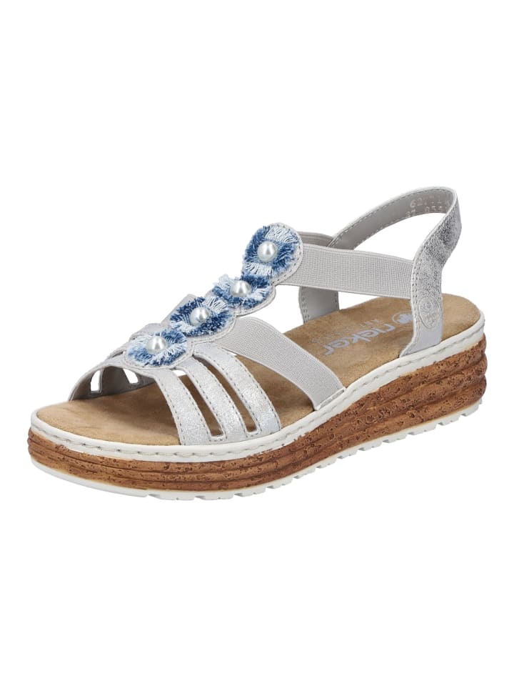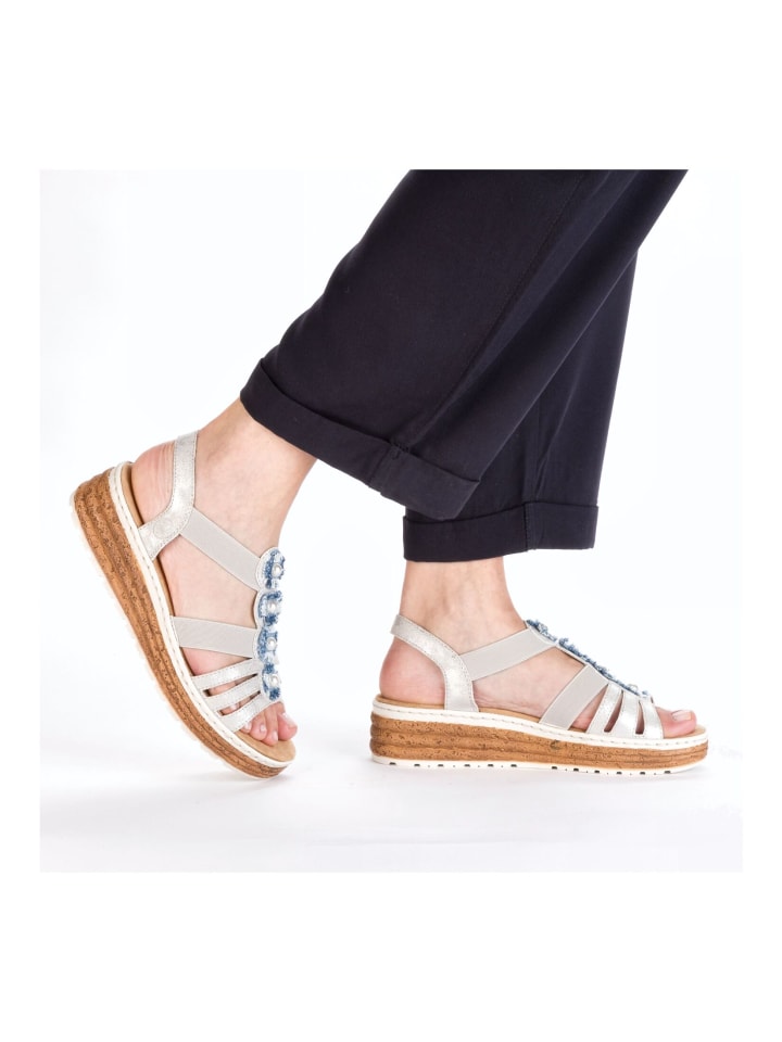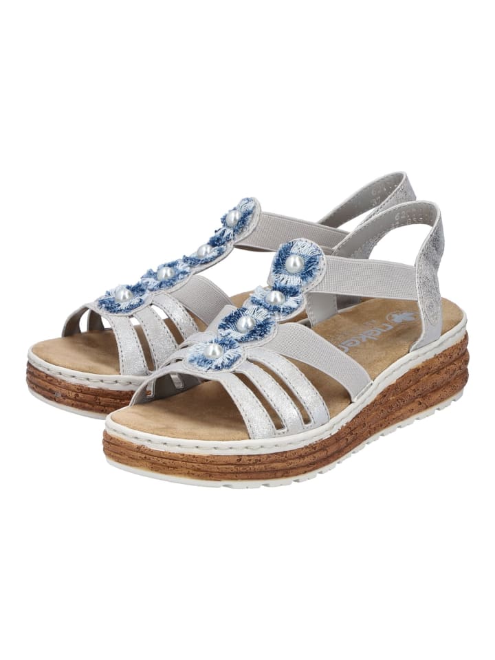 Сандалии на плоской подошве rieker, цвет silber/blau