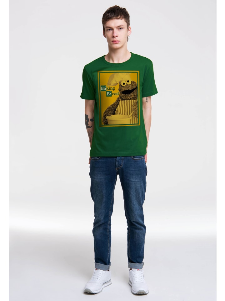 Красочная графическая футболка «Cookie Monster - Baking Bread» от Logoshirt украшена принтом всемирно известного вечно голодного героя Улицы Сезам — Печенькового Монстра. Огромный монстр с синим мехом и вращающимися глазами больше всего на свете любит печенье. \"Я голоден!" Ам ням ням. Эта футболка — настоящая находка для поклонников «Улицы Сезам». Топ с короткими рукавами имеет прямой крой и очень удобен в комбинировании. Благодаря высококачественной и долговечной трафаретной печати в ретро-стиле графическая футболка выглядит как оригинал из 60-х годов и по-настоящему привлекает внимание. Благодаря предварительной усадке и превосходному качеству рубашка сохраняет свою форму даже после нескольких стирок. Футболка с крутым принтом изготовлена из 100% мягкого и приятного на ощупь хлопка