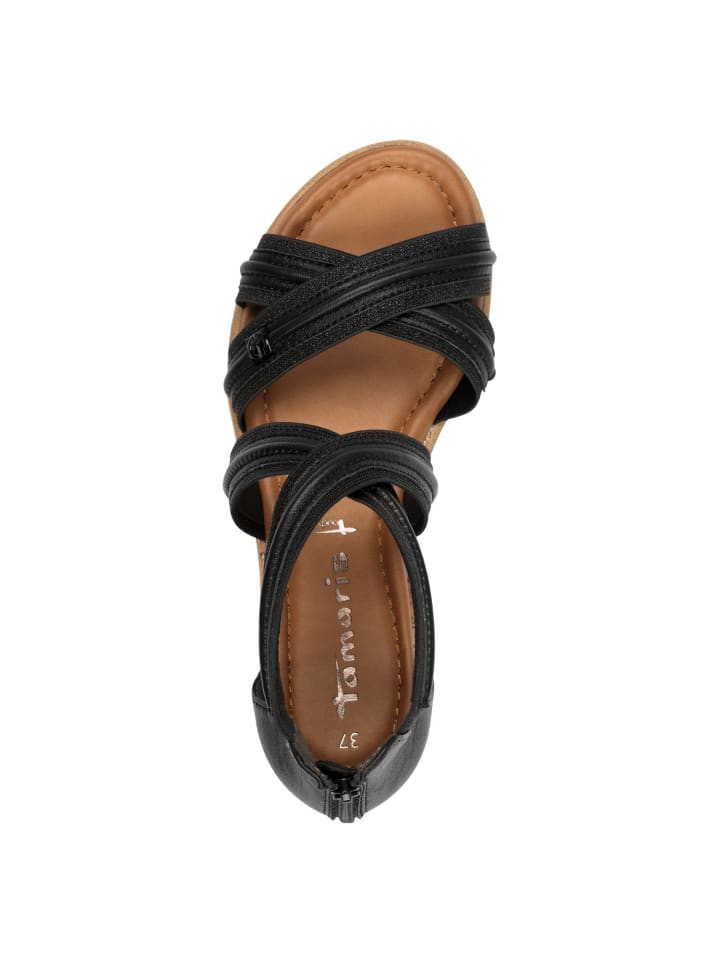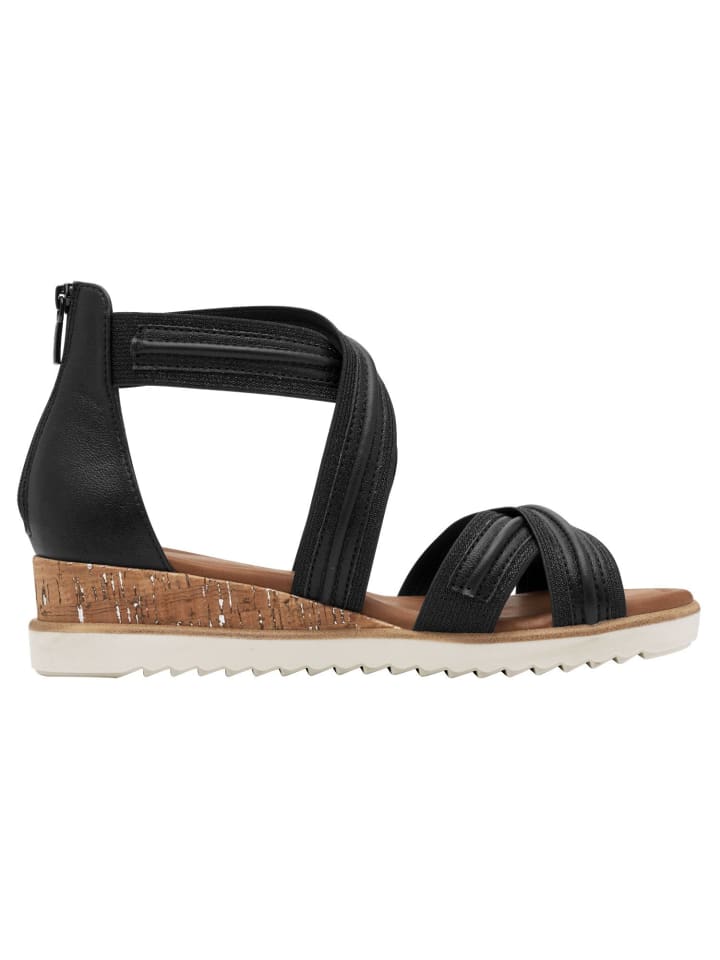 Эти элегантные сандалии из высококачественного синтетического материала сочетают в себе современный шик и первоклассный комфорт. Стильный дизайн в металлическом и черном цвете дополняют перекрещивающиеся лямки и практичная застежка-молния, что делает их идеальным спутником для отдыха и летних мероприятий. Структурированная плоская подошва гарантирует комфортную ходьбу, а технология TOUCH-IT обеспечивает дополнительный комфорт. Благодаря каблуку высотой 4,5 см они одновременно элегантны и подходят для повседневной носки. - Максимальный комфорт благодаря технологии TOUCH-IT