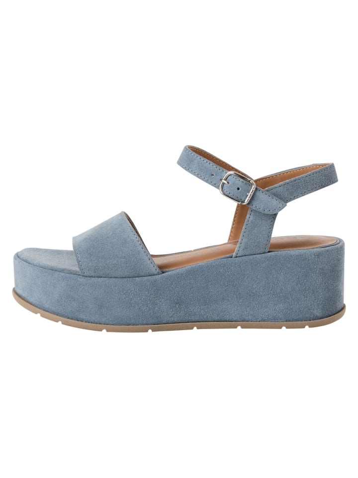 Создайте образ, сочетающий в себе элегантность и современность, с этими стильными сандалиями из высококачественной кожи. Закругленный каблук-танкетка высотой 6,0 см и структурированная подошва не только обеспечивают высокий комфорт при ношении, но и гарантируют уверенную походку. Будь то повседневные летние мероприятия или расслабленные моменты отдыха — эти сандалии универсальны и в то же время сдержанны. Женственные ремешки дополняют общий образ и делают их идеальным спутником для разных случаев. - Удобные босоножки на танкетке высотой 6 см
