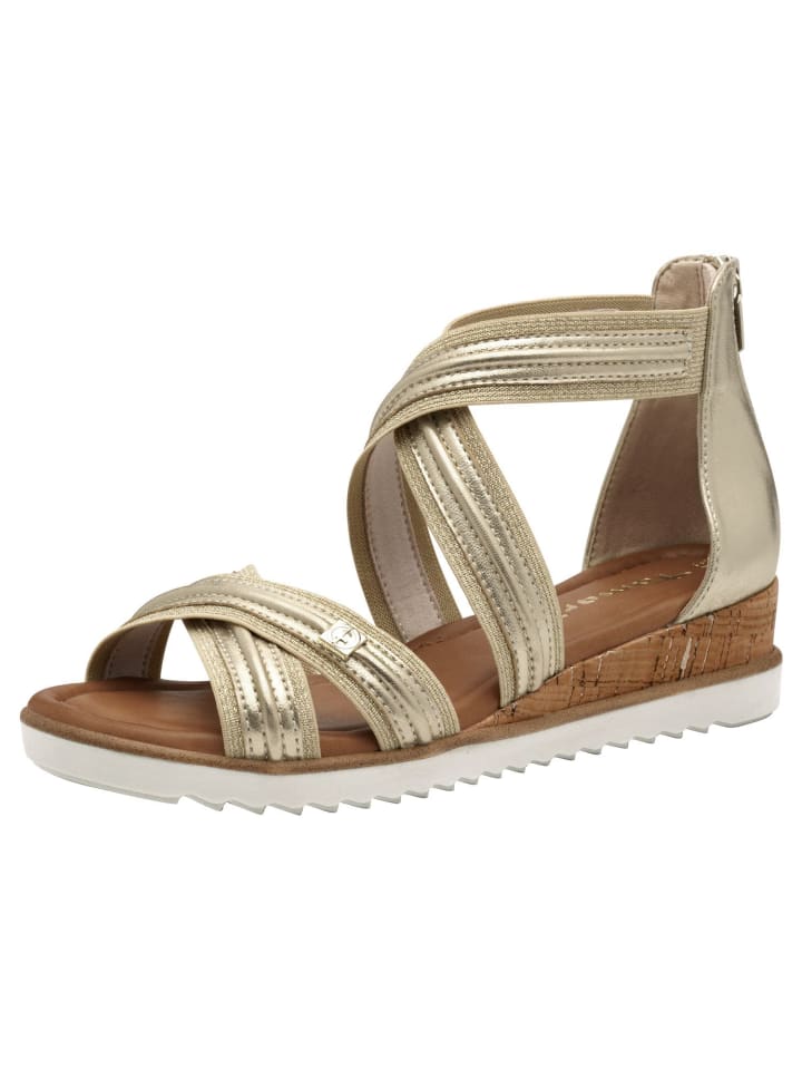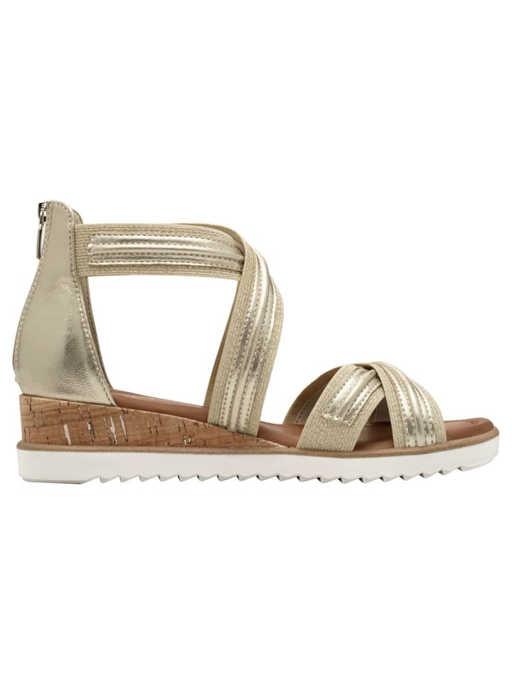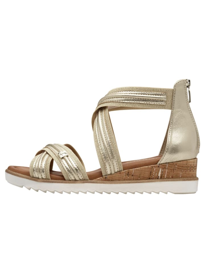Эти элегантные сандалии из высококачественного синтетического материала сочетают в себе современный шик и первоклассный комфорт. Стильный дизайн в металлическом и черном цвете дополняют перекрещивающиеся лямки и практичная застежка-молния, что делает их идеальным спутником для отдыха и летних мероприятий. Структурированная плоская подошва гарантирует комфортную ходьбу, а технология TOUCH-IT обеспечивает дополнительный комфорт. Благодаря каблуку высотой 4,5 см они одновременно элегантны и подходят для повседневной носки. - Максимальный комфорт благодаря технологии TOUCH-IT