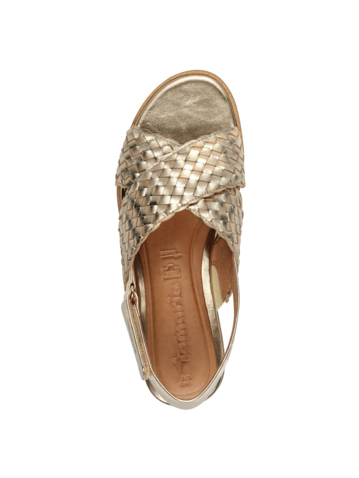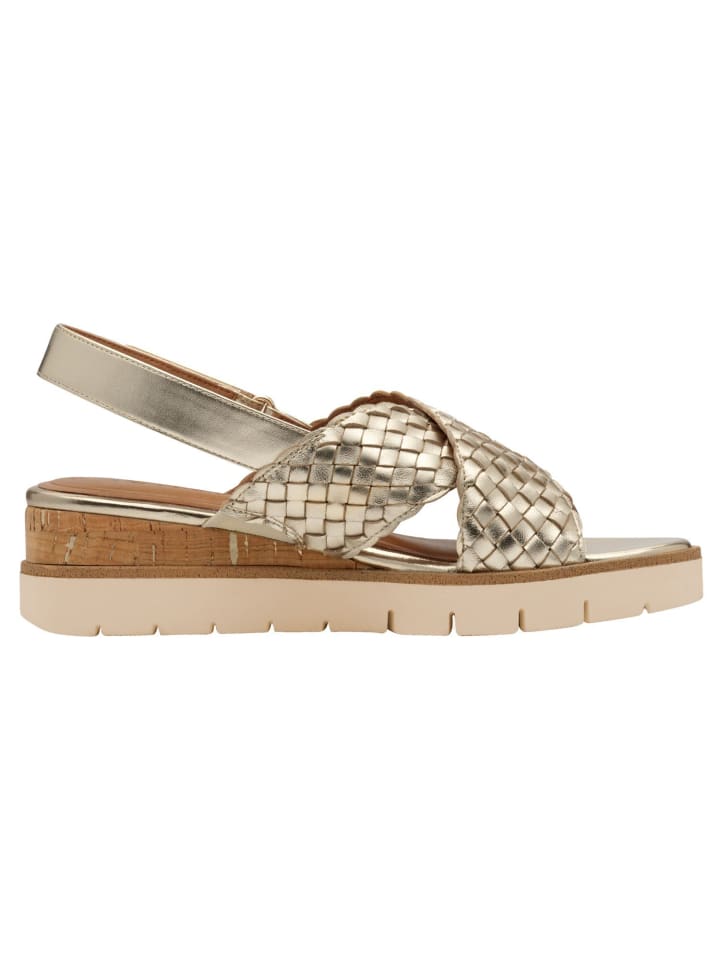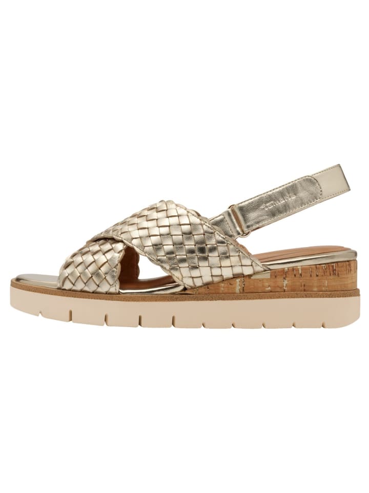 Почувствуйте легкость лета в этих элегантных сандалиях из высококачественной кожи и пробки с современным плетеным дизайном. Универсальный дизайн в мягких оттенках, таких как бежевый и золотой, а также конструкция с открытой пяткой обеспечивают оптимальную поддержку и комфорт. Благодаря каблуку высотой 5,0 см они не только придадут вам стиль, но и женственный силуэт. Идеально подходит для активного отдыха или спокойных летних мероприятий – необходимая вещь для любого отпуска. - Оптимальный комфорт благодаря инновационной технологии подошвы