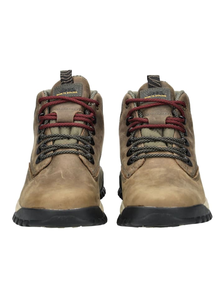 JEEP впечатляет прочными походными ботинками в стильном дизайне. Эта обувь также выигрывает за счет сочетания материалов: кожи и текстиля, которые обладают водоотталкивающими свойствами. При необходимости стельку можно заменить.