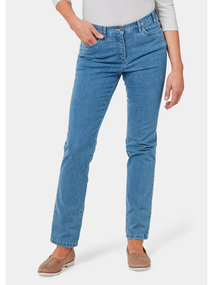 Джинсы моделей CARLA и ANNA имеют пять карманов, а модели LOUISA и MARTHA — четыре кармана на поясе. По желанию с частично эластичным поясом для CARLA, ANNA и MARTHA или с круговым эластичным поясом для LOUISA. Материал чрезвычайно эластичный, мягкий и стабильный по размерам. Вышивка сверкающими стразами в форме бабочек расставляет модные акценты. Заднее седло обеспечивает хорошую посадку. Ширина подола CARLA ок. 38 см, АННА ок. 36 см, ЛУИЗА/МАРТА каждая прибл. 40 см. Ширина прямого штанина.