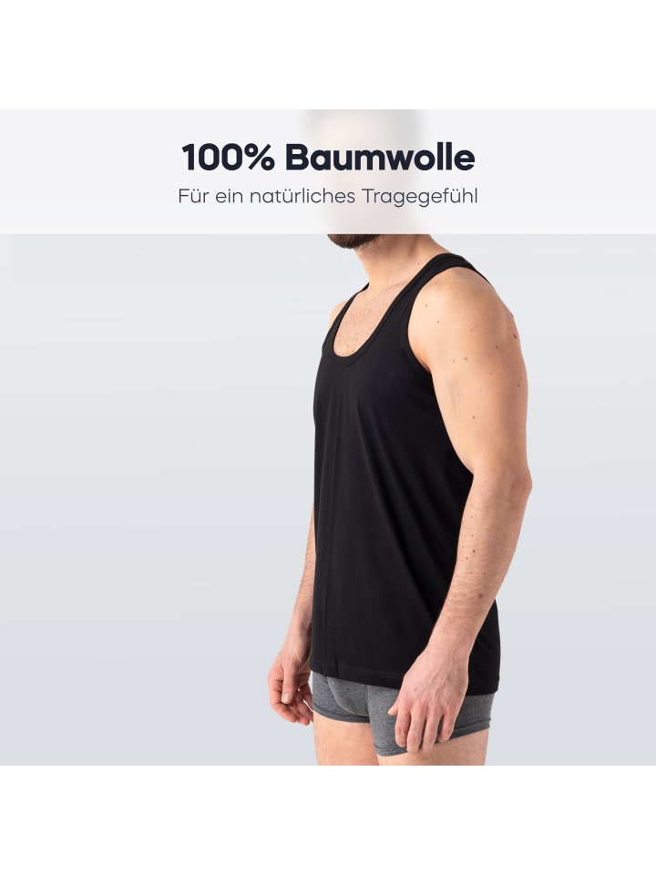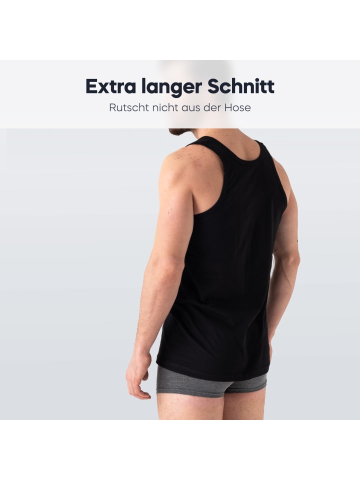 ПРАКТИЧНЫЙ ПОКРОЙ: Наши мужские майки и майки удлинены в области бедер. Мужская майка шире подмышек, поэтому не врезается в тело.
