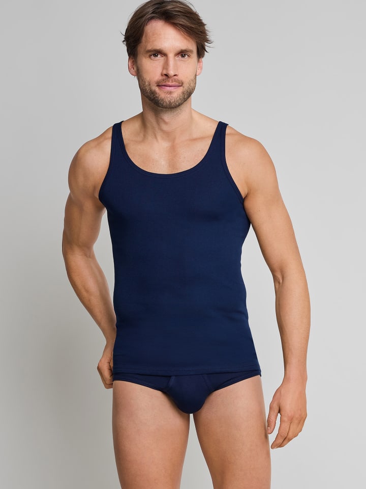 Черная мужская майка из серии SCHIESSER Classics, особенно удобная и без раздражающих боковых швов, с немного удлиненной спинкой для идеальной посадки, из удобного, приятного на ощупь тонкого рубчика. - Высокое качество изготовления.