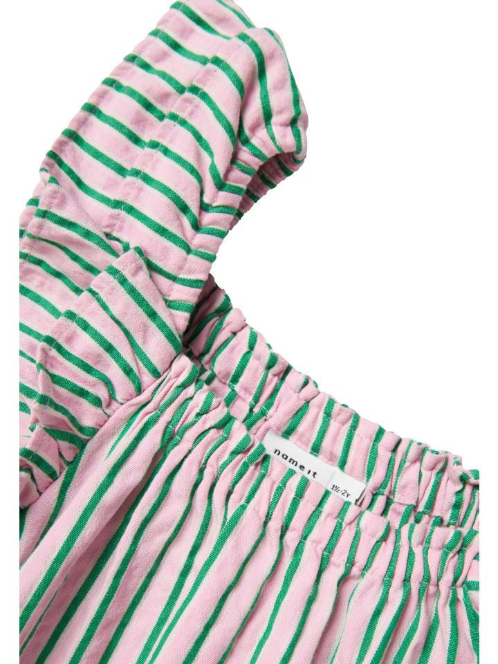 Это воздушное мини-платье идеально подойдет для теплых дней и игривых образов! Широкие бретели с оборками по подолу придают платью милый, девичий вид. Трапециевидный вырез и эластичная резинка на шее обеспечивают комфортное ношение, а также легкость надевания и снятия. Благодаря свободному крою платье обеспечивает полную свободу движений — идеально подходит для резвости, игр или просто для хорошего самочувствия. Полосатый рисунок привнесет летнюю свежесть в ваш образ, а вшитая этикетка на внутренней стороне изящно завершает дизайн. Просто зайдите и почувствуйте себя хорошо!