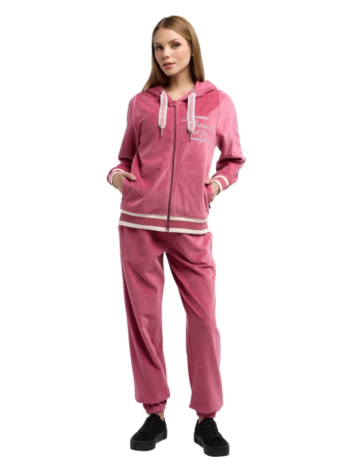 Женская велюровая толстовка сочетает в себе комфорт и стиль, выполненные из мягкого, роскошного материала. Изготовленный из высококачественной велюровой ткани, он впечатляет своей бархатистой поверхностью и приятным на ощупь ощущением, которое передает ощущение тепла и защищенности. Благодаря спортивному, непринужденному крою куртка обеспечивает идеальную посадку и максимальную свободу движений. Молния по всей длине и практичные карманы обеспечивают функциональность в повседневной жизни. - Печать логотипа на груди