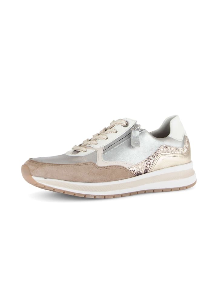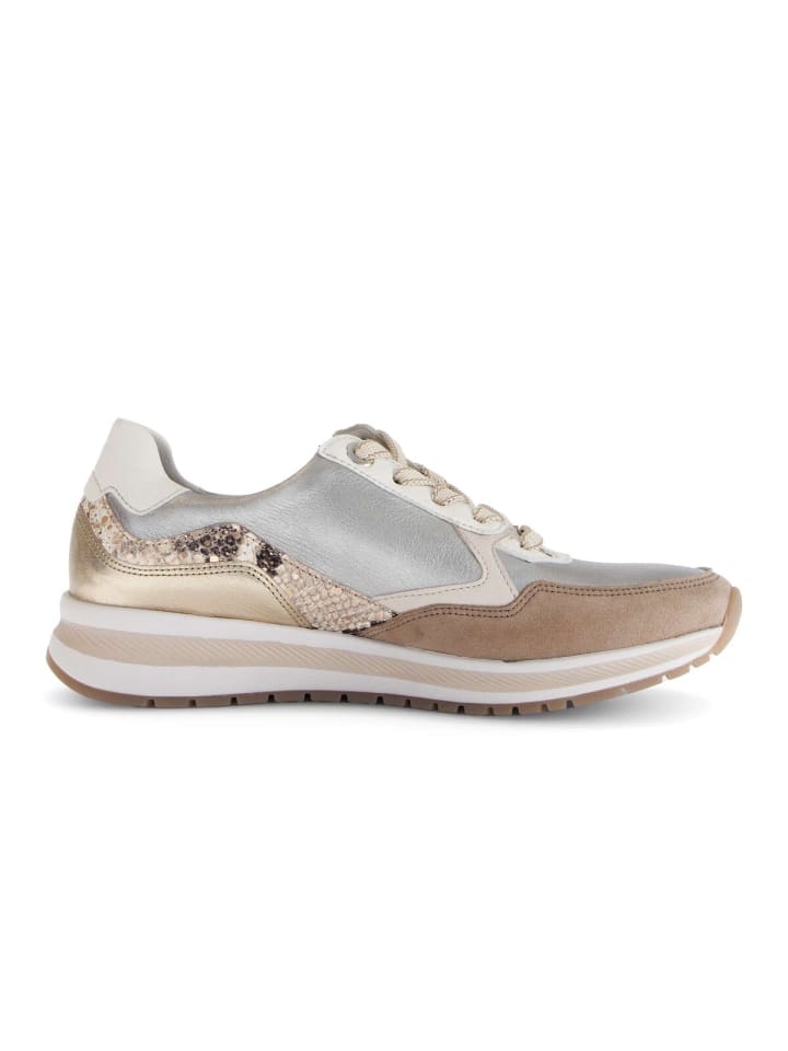 Удобные кроссовки Gabor Comfort Low белого цвета — идеальный выбор для стильных женщин. Верхний материал изготовлен из высококачественной кожаной смеси и придает кроссовкам неповторимый вид. Полнота обуви G (средняя) означает, что кроссовки идеально подойдут для обычной женской стопы с шириной выше средней. Данная модель оснащена съемной стелькой из переработанного материала, что не только обеспечивает комфорт, но и соответствует принципам бережного отношения к окружающей среде. Кроссовки из линейки Comfort имеют больший объем в области подушечки и подъема стопы, а также дополнительное пространство для пальцев, что обеспечивает устойчивость стопы.